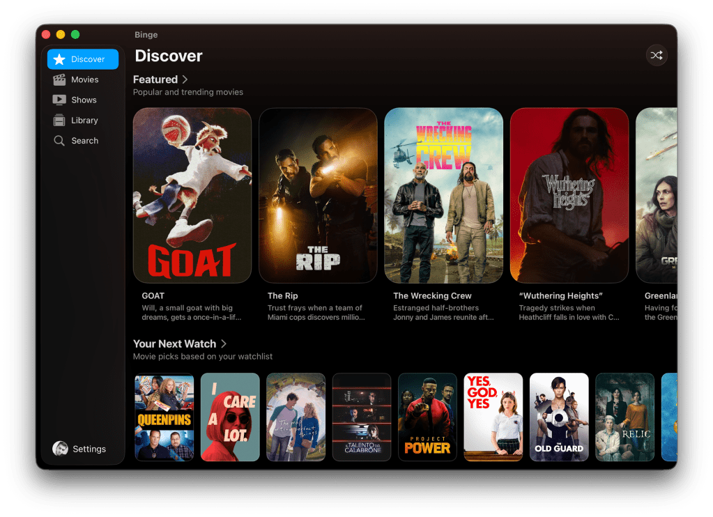 Developer Shihab Mehboob envisions Binge as a comprehensive platform for tracking movies, TV shows, collections, actors, streaming services, networks, and production companies. Users can access standard details about their favorite titles, such as release dates, descriptions, trailers, cast and crew information, reviews, runtime, and genre.